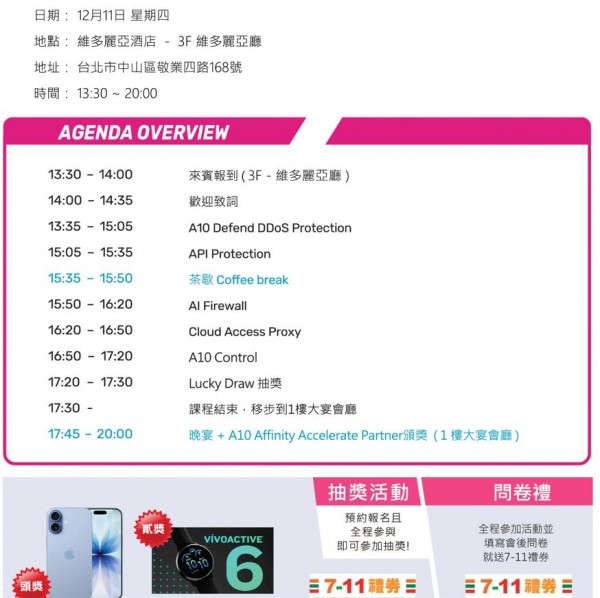 A10 Networks將在12/11日針對台灣地區經銷商說明A10新的產品技術,