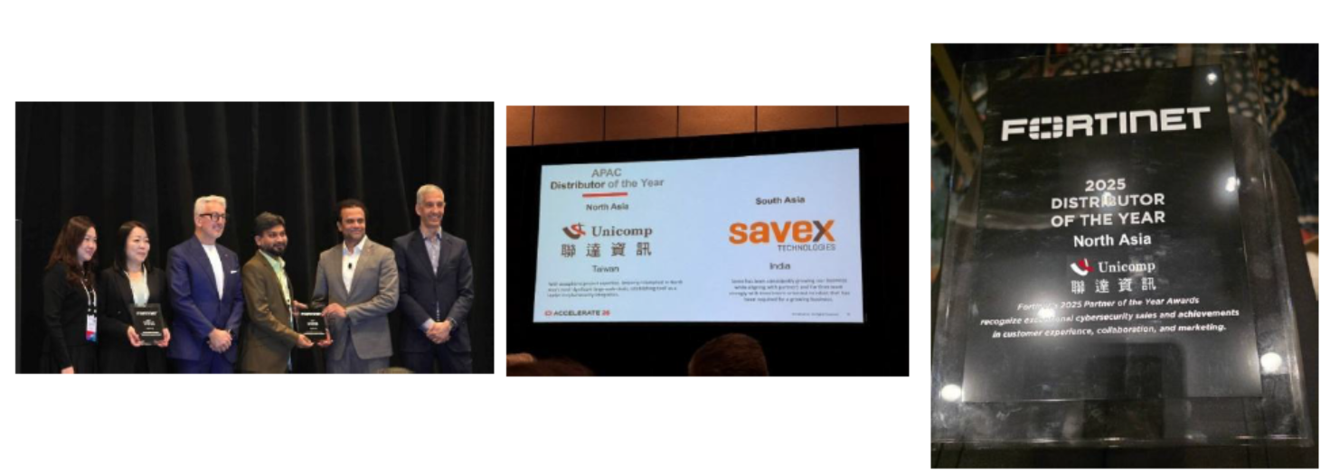 Fortinet 專業網路資安代理商—聯達資訊 (Unicomp) 宣布,憑藉卓越的營運表現與技術實力,於今日美國亞利桑那州舉行之Fortinet Accelerate26 Channel Breakout大會中,勇奪「2025北亞區年度最佳代理商 (2025 DISTRIBUTOR OF THE YEAR – North Asia)」最高殊榮!